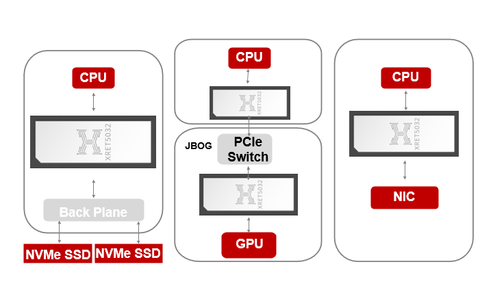 Our PCIe Retimer chip, with its leading architecture, has the characteristics of ultra-low latency, low power consumption, and easy to use, increasing the effective transmission distance of high-speed signals, and providing high-performance PCIe interconnection solutions for servers, storage devices, and hardware accelerators. The chip complies with PCIe 5.0 and CXL 2.0 specifications, and its key performance indicators such as power consumption and transmission delay have reached the international advanced level, and is compatible with most CPUs, PCIe switches, solid state drives, GPUs and network cards on the market.